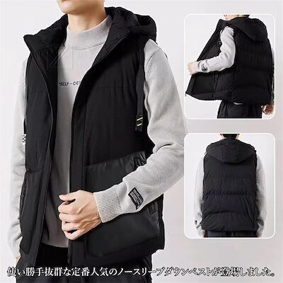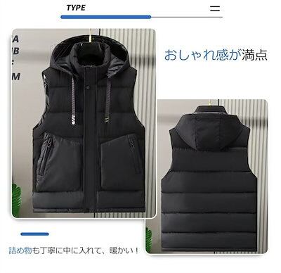 24H限定:1枚20%OFF ダウンベスト 中綿ベスト メンズ 秋冬服 レディース 男女兼用 フード付き 立襟 防寒対策 ダウン インナー ベスト 中綿 帽子取り外し 20-70代対応 大きいサイズ | koookooo