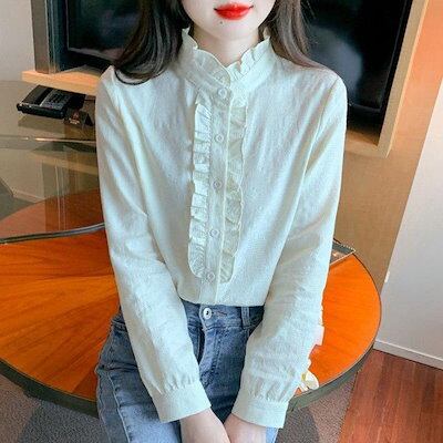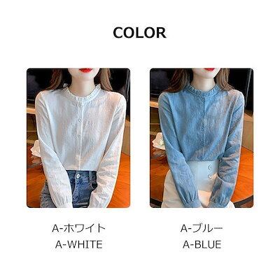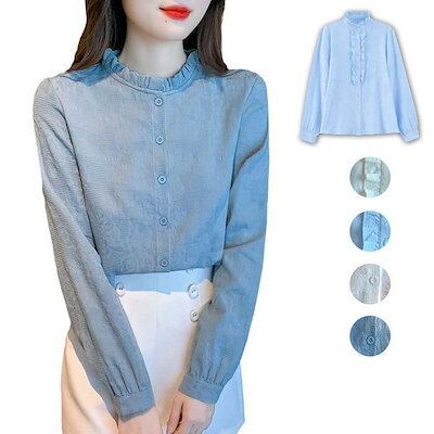 春 ブラウス レディース フリルシャツ スタンドカラー フリル 立ち襟 2type 長袖トップス シャツ 体型カバー 春 秋