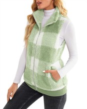 ボア ベスト レディース ボアベスト チェック柄 カーディガン コート 立ち襟 羽織り ノースリーブ 重ね着 トップス ファスナー 着痩せ 秋 冬 大人 ストリート 前開き きれいめ 通勤 OL オフ | koookooo