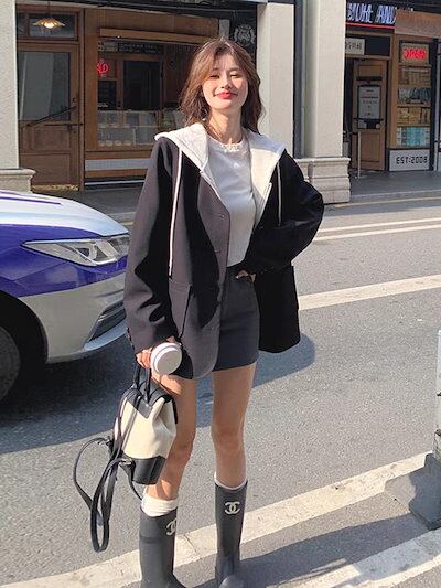大人気 韓国ファッション ゆったりスウェット 秋アウター レディース アウター ジャケット レディース スウェット 大きいサイズ フード付き ロングジャケット