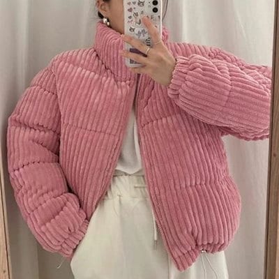 [ 即日発送]コーデュロイ 中綿 ブルゾン ショート丈 ジャケット もこもこ アウター レディース ショート 軽い 暖かい 長袖 中綿ブルゾン 中綿ジャケット スタンドネック 羽織り コーデュロイジャ | koookooo