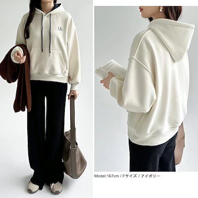 [ 即日発送]裏起毛 パーカー バイカラー フード 配色 切り替え ロゴ あったか レディース トップス フード付きパーカー おしゃれ 暖かい 長袖 刺繍 ロゴパーカー プルオーバー ゆったり ドロッ | koookooo