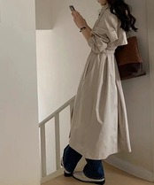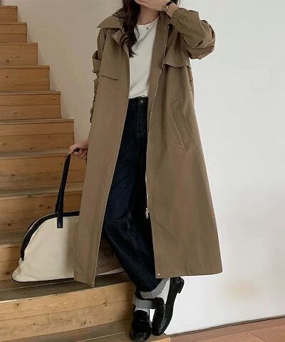 [ 即日発送]コート ステンカラーコート ヨーク付き レディース トレンチコート アウター ロング丈 ロングコート きれいめ ゆったり オシャレ スプリングコート ベルト付き トレンチ ポケット 羽織 | koookooo