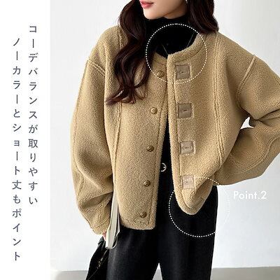 [ 即日発送]リバーシブル ボア アウター フェイクムートン ボアジャケット レディース ショート丈 2way ムートン ジャケット ノーカラー スエード 金ボタン ノーカラージャケット ムートンジャ | koookooo