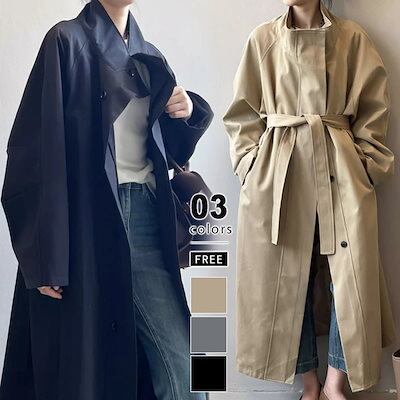 [ 即日発送]コート トレンチコート ロングコート レディース アウター スタンドカラー オーバーサイズ ロング スプリングコート ライトアウター ウエストマーク オフィス オフィスカジュアル 大きい | koookooo