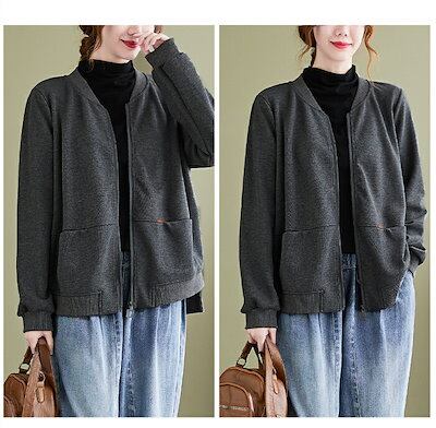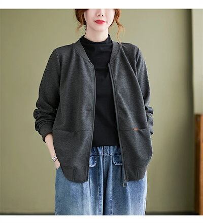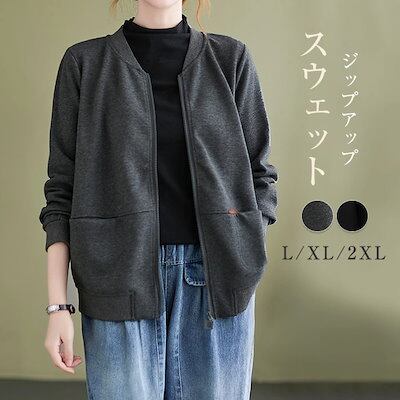 スウェット カーディガン レディース トップス トレーナー 長袖 春 秋 無地 クルーネック 丸首 ジャケット カジュアル 羽織り ビッグシルエット スリット シンプル 大人 大きいサイズ ゆったり | koookooo