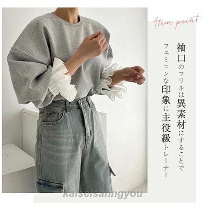 安い商品 今日だけ トップス フリル袖 レディース 春 秋 長袖 スウェット トレーナー 重ね着 トレーナー 異素材切り替え フリル袖 無地 シンプル ゆったり カジュアル ボリュ ギフトポイント | koookooo