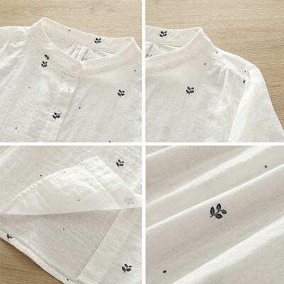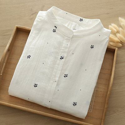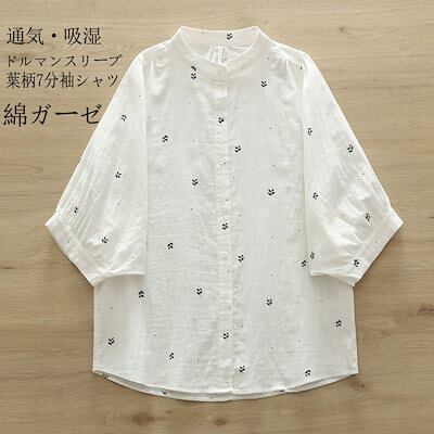 ブラウス 七分袖 半袖 襟付き シャツ 柄 シャツブラウス レディース トップス 半袖ブラウス 半袖シャツ 綿 ドルマンスリーブ バンドカラー ガーゼシャツ ダブルガーゼ ボタン ギャザー入り 柔らか | koookooo