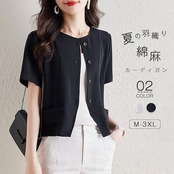 カーディガン レディース トップス 綿麻風 春夏 半袖 ショート丈 羽織り uvカット 無地 接触冷感 日焼け対策 シャツブラウス 薄手 ゆったり ボタン 涼しい 大きいサイズ 体型カバー 通勤 シン | koookooo