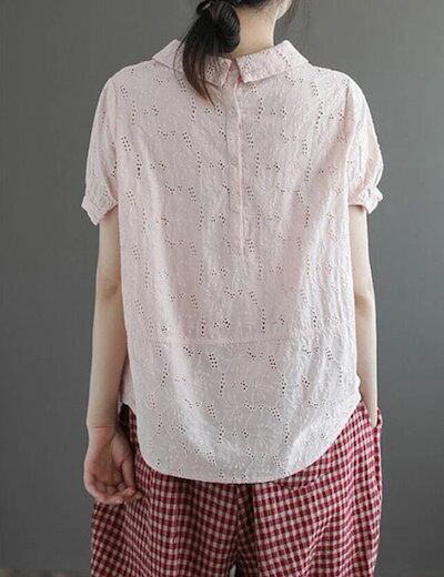 刺繍ブラウス 夏 シャツ ブラウス レディース 半袖 後ろボタン シャツブラウス バックボタン トップス 大きいサイズ 着痩せ ゆったり 森ガール シンプル 大人可愛い きれいめ ナチュラル シンプル
