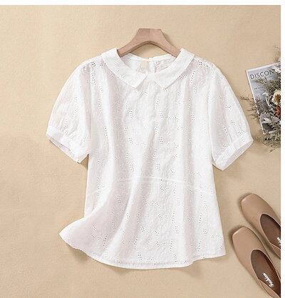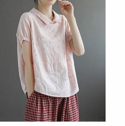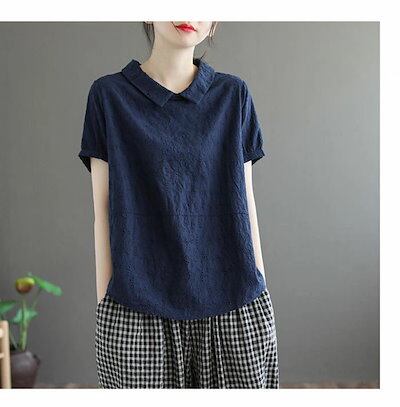 ブラウス 夏 シャツ レディース 半袖 後ろボタン シャツブラウス バックボタン トップス 大きいサイズ 着痩せ ゆったり 森ガール シンプル 大人可愛い きれいめ ナチュラル シンプル 無地 刺繍 | koookooo
