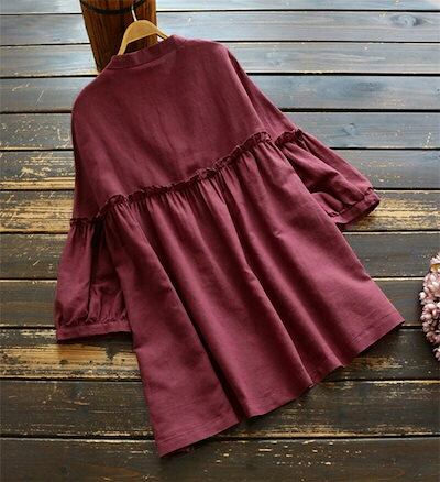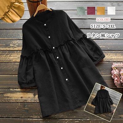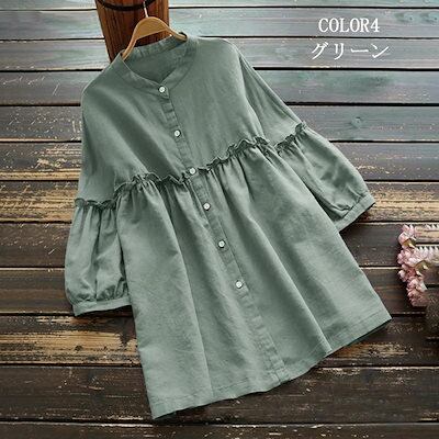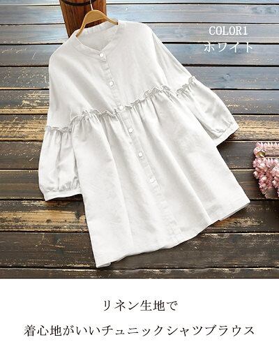 シャツ レディース チュニック ブラウス 春物 ボタン シャツブラウス ロングシャツ 長袖 綿 麻 大きいサイズ 長袖チュニック ノーカラー ドルマンスリーブ ドロップショルダ とろみ バールン袖 フ | koookooo