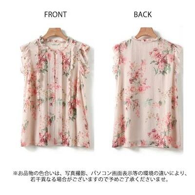 シャツ シフォン フリルシャツ レディース 夏 ノースリーブ プルオーバー フリル ブラウス 夏シャツ ボタン タックシャツ 水玉柄 プリント ドッキング トップス 白 花柄 袖なし シャツブラウス | koookooo