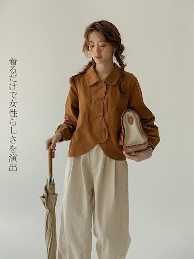 前開き 長袖シャツ 春夏 シャツ レディース 長袖 ブラウス オフィス 長袖ブラウス シャツブラウス ショート丈シャツ 春服 きれいめ コーデ 不規則 ショート丈 トップス 折襟 無地 ボタン 袖ギャ | koookooo