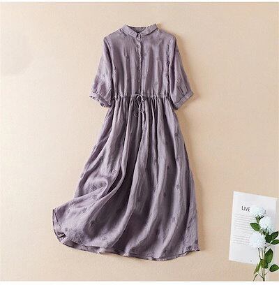 【急速出荷!】シャツワンピース 半袖 ロングワンピース レディース ワンピース ミモレ丈 ワンピース 総柄 ロングワンピース スタンダードカラー 綿麻風 ミモレワンピ 大きいサイズ ゆったり 体型カバ | koookooo