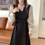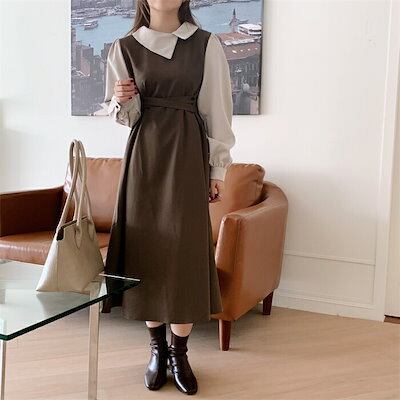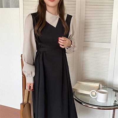 【急速出荷!】ワンピース レディース 長袖 春 夏 ロングワンピース ボリューム袖 レイヤード風 ミモレワンピース ロング丈 ワンピース ミモレ丈 ロングワンピ ゆったり 体型カバー シンプル カジュ | koookooo