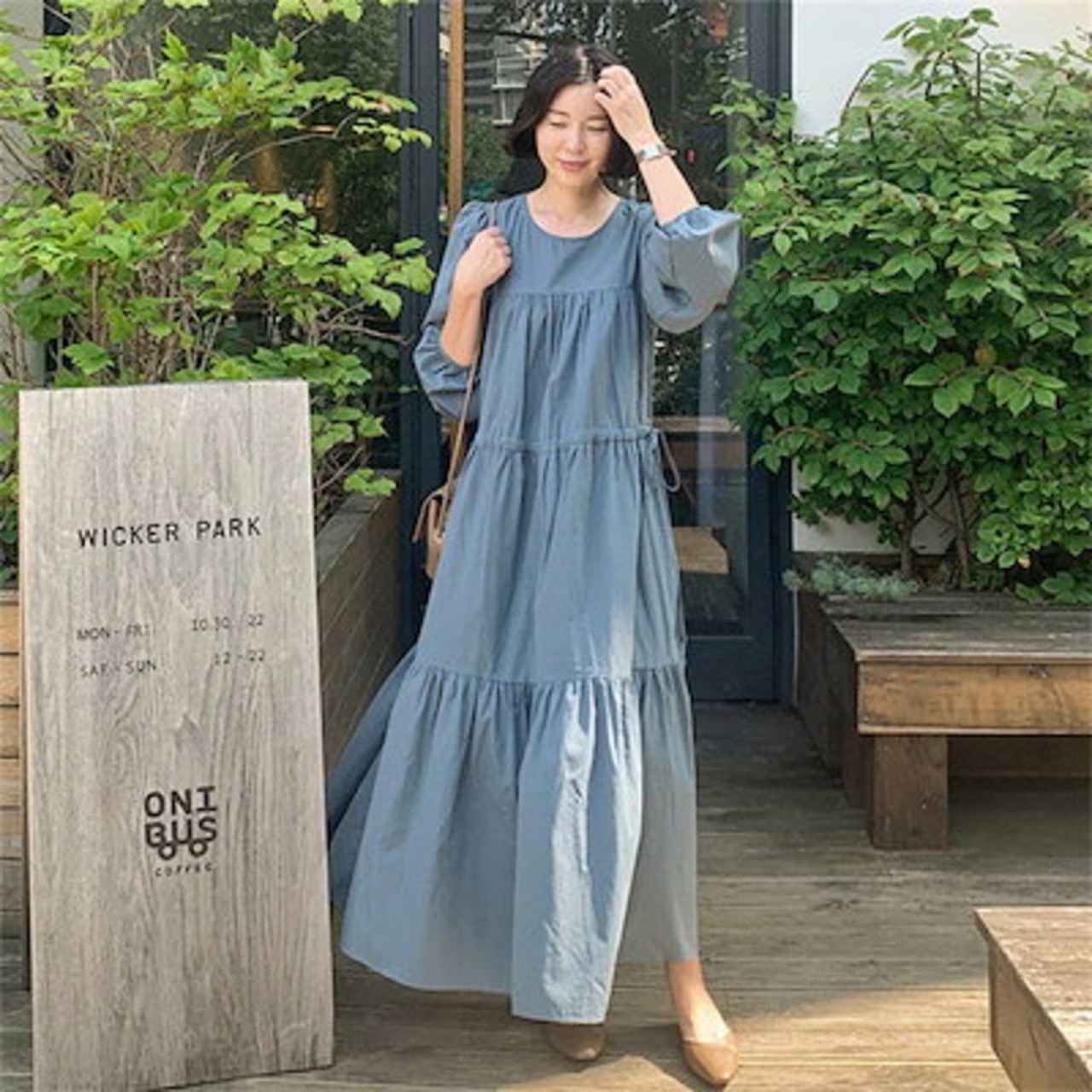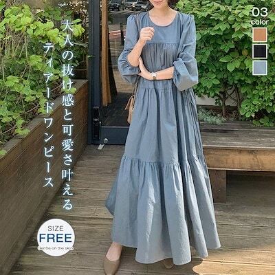 【急速出荷!】ティアードワンピース マキシワンピース 秋 レディース 長袖 ロングワンピース ティアード 大きいサイズ マキシ丈 ゆるワンピース ゆったり キレイめ ワンピ 無地 モード ナチュラル | koookooo
