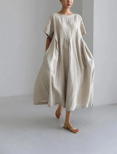 【急速出荷!】ンワンピース 綿麻 ロングワンピ 半袖 レディース ミモレ丈 薄手 春 夏 無地 ゆったり フレア 体型カバー 大きいサイズ キレイめ 着痩せ 大人 カジュアル ワンピース シンプル ベ | koookooo