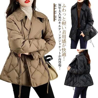 ダウンジャケット レディース フェイクダウンアウター ブルゾン 羽織り ダウンジャケット 上着 ショート丈 キルティング キルトジャケット テーラードカラー フレア 長袖 防寒 ゆったり 秋 冬 大人 | koookooo
