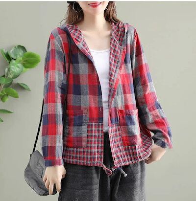 カーディガン 羽織り フード付き パーカー ジャケット チェック柄 長袖 レディース 春 夏 秋 綿麻 リネン 羽織 ゆったり フェミニン 着回し シンプル 薄手 カジュアル 体型カバー 細見え | koookooo