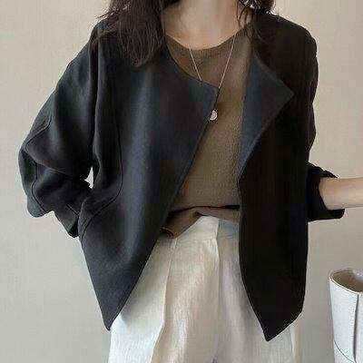 ジャケット レディース ノーカラージャケット 春 夏 秋 綿麻風 長袖 七分袖 無地 羽織り UVカット カーディガン サマージャケット カーディガン ライトアウター アウター 大人 ショート丈 ママ | koookooo