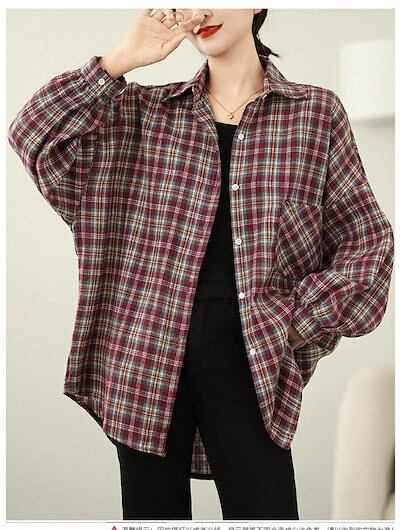 チェック柄 シャツ 長袖 ブラウス レディース シャツブラウス 秋 大きいサイズ トップス シャツジャケット 羽織 チュニック 体型カバー ゆったり 折襟 アウター 長袖シャツ 春 着痩せ ボリューム | koookooo