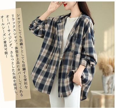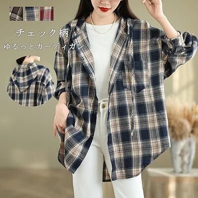 カーディガン チェック柄 シャツ パーカー レディース アウター 羽織り シャツジャケット 大きいサイズ コート ジャケット コーディガン ロングシャツ ライトアウター 長袖 秋 春 ロング丈 チェッ | koookooo