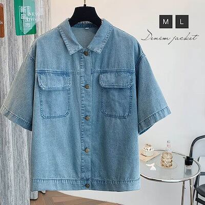 デニムシャツ 綿 ブラウス レディース 半袖 夏 秋 春 無地 ジャケット 薄手 コットン デニム シャツ トップス カジュアル 体型カバー ナチュラル おしゃれ 通勤 秋春 綿シャツ オフィス シン | koookooo