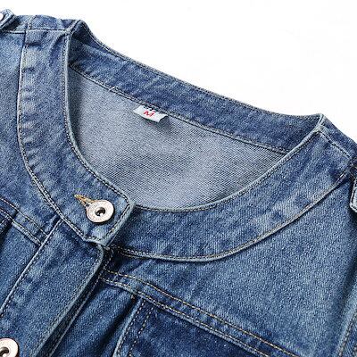 デニムジャケット レディースノーカラージャケット ジャケット 長袖 ショートジャケット Gジャン ジージャン ノーカラー ライトアウター 秋服 おしゃれ 大きサイズ 春服