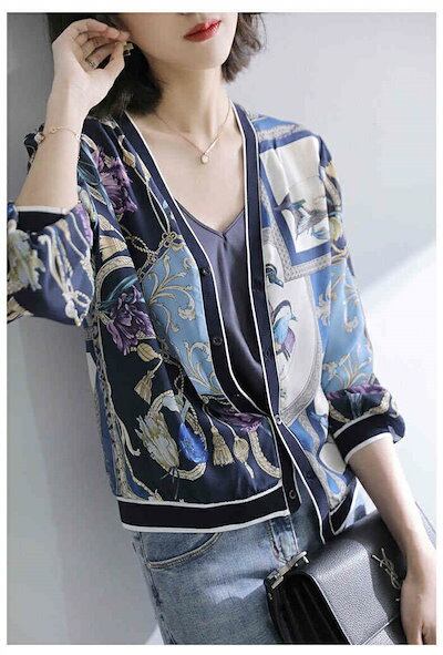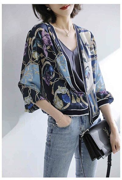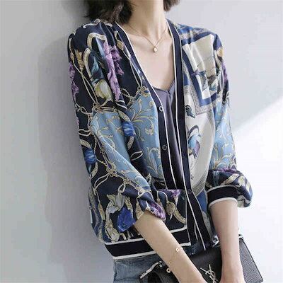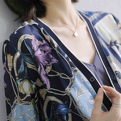 薄手 カットソー スカーフ柄 かっこいい カーディガン トップス レディース きれいめ コート ジャケット アウター シフォン 羽織 カジュアル おしゃれ 上品 韓国 コーデ ブルー 夏 秋 20 | koookooo