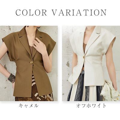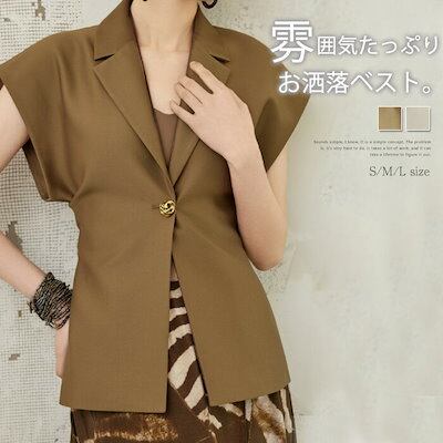 ジレ ベスト レディース フォーマル 春 夏 秋 ロング フレンチスリーブ テーラードベスト 羽織り ジャケット スーツベスト ノースリーブ 個性的 シンプル きれいめ 前開き 無地 お洒落 | koookooo
