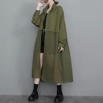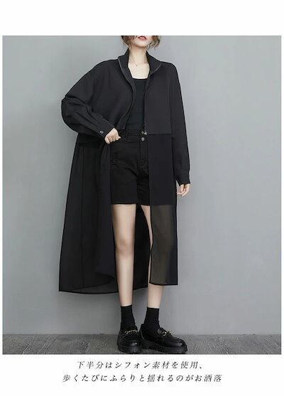 スプリングコート レディース コート 春 モッズコート 夏 ロングコート シフォンコート ミリタリーコート 通勤 薄手 長袖 アウター ドロップショルダー 立ち襟 ハイネック 異素材のドッキング 秋 | koookooo