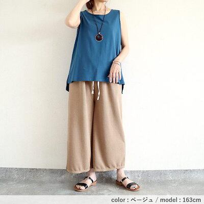 【半額で!795円!】 夏新作 ガウチョパンツ レディース ボトムス ワイドパンツ 凸凹 エンボス ロゴ紐 夏 [郵2]^b449^