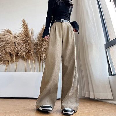 ワイドパンツ春夏 秋冬 パンツ レディース ロングパンツ 微起毛 ガウチョパンツ 体型カバー パンツ ストレートパンツ ロング ロング丈パンツ コーデュロイ 秋物 裏起毛 ウェスト | koookooo