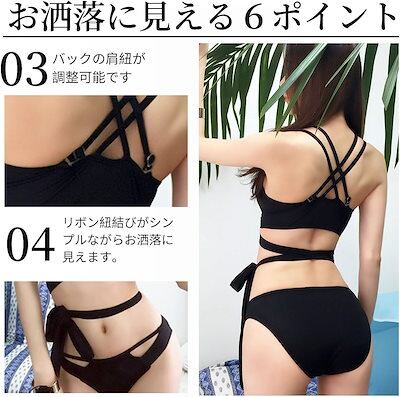レディース ビキニ 水着 2点セット ストラップ セクシー スイムドレス レースアップ セパレート 編みあげ ブラック水着 三角水着 上下セット ビキニセット 女性水着 ハイウエストショーツ 無地 | koookooo