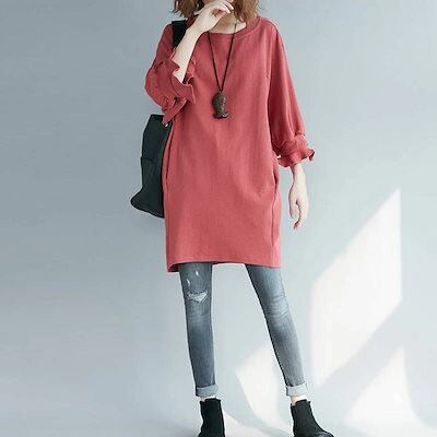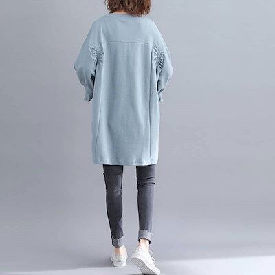 チュニック 春 ブラウス レディース 七分袖 長袖 カットソー tシャツ パーカー プルオーバー スウェット トレーナー ロング トップス 春 フレア袖 大きいサイズ 大人 可愛い ロングパーカー 体 | koookooo