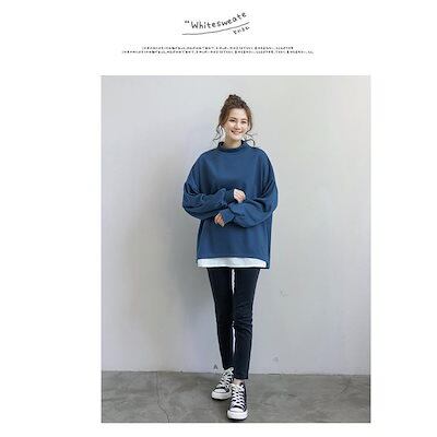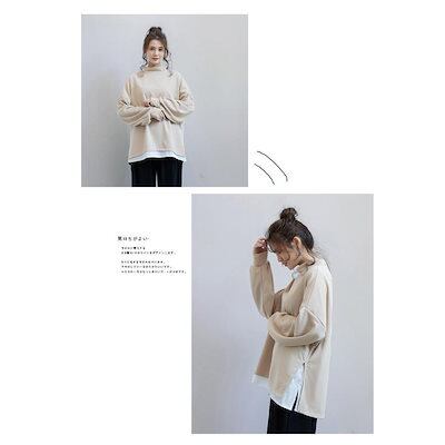 Tシャツ パーカー フェイクレイヤード ブラウス レディース ドッキング 長袖 大人の魅力 スリット 無地 コーデ カジュアル 春 ゆったり オフネック エレガント きれい 30代 | koookooo