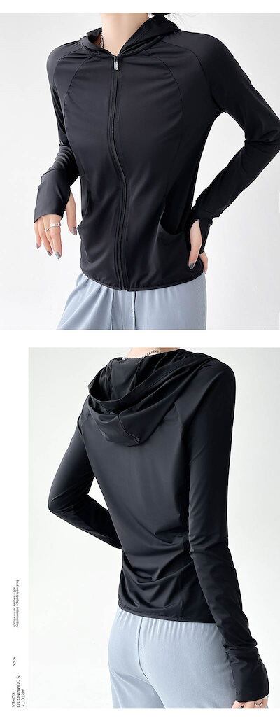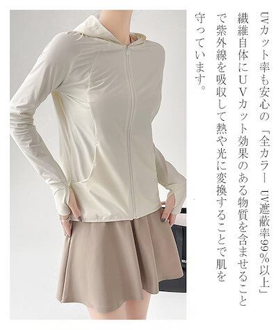 UVカット パーカー レディース カーディガン 紫外線対策 通気口 指穴 薄手 夏用 接触冷感 ひんやり 涼しい 長袖 フード付き スポーツ 日焼け防止 ラッシュガード 冷房対策 UV対策 夏 体型カ | koookooo