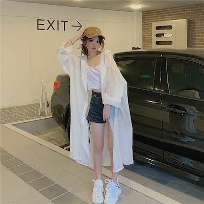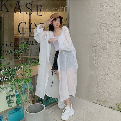 ロングカーディガン フード付き レディース ロングパーカー シアー ボタン アウター 羽織 ロング 夏 紫外線対策 冷房対策 日焼け対策 薄手 無地 ライトアウター キレイめ 透け感 ゆったり カジュ | koookooo