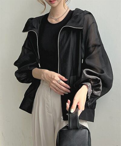 シアー カーディガン 透け感 パーカー レディース 夏 ライトアウター フード付き カーディガン 紫外線対策 日焼け止め 前開き 夏 春 冷房対策 透け感 トップス 羽織 ふんわり 涼しい 日焼け対策 | koookooo