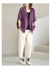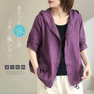 カーディガン レディース パーカー 春夏 薄手 半袖 五分袖 ブラウス フード付き カーデ ライトアウター 綿麻風 羽織り ショート丈 サマー 無地 トップス ナチュラル風 大きいサイズ 紫外線対策 | koookooo