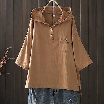 チュニック tシャツ プルオーバー レディース 半袖 フード付き ブラウス パーカー ガーゼ トップス 春 夏 シャツブラウス 半袖tシャツ カットソー Tシャツ ロング 無地 ゆったり 体型カバー | koookooo