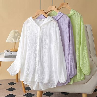 シャツ レディース 長袖 パーカー 春夏 薄手 UV トップス 長袖 羽織 羽織もの UVカット 紫外線 冷房対策 長袖シャツ 春 夏 UVケア アウター フード付き 紫外線対策 パーカー おしゃれ | koookooo