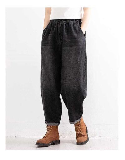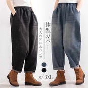 デニム パンツ バルーン デニムパンツ 秋冬 レディース パンツ ロングパンツ パンツ ボトムス デニム ワイドパンツ ガウチョ ハロンパンツ ロング丈 大きいサイズ ハイウエスト 体型カバー 着痩せ | koookooo