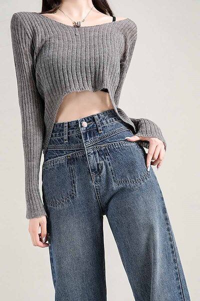 ジーンズ デニムパンツ パンツ ボトムス レディース 秋 大きいサイズ ワイド デニム ロング ワイド ガウチョパンツ ロングパンツ ガウチョ ハイウエスト レトロ 体型カバー 着痩せ 落ち感 ポケッ | koookooo