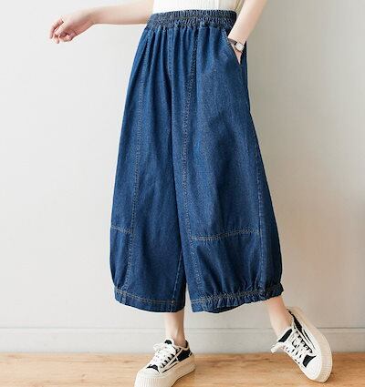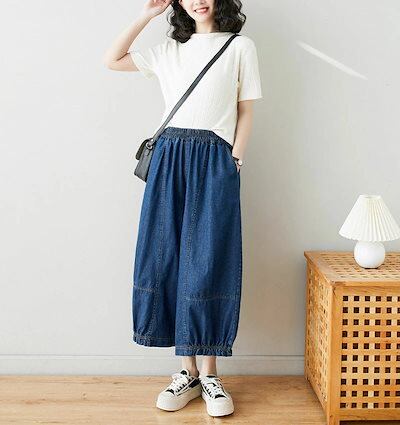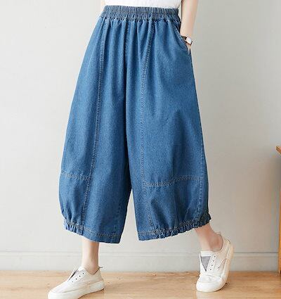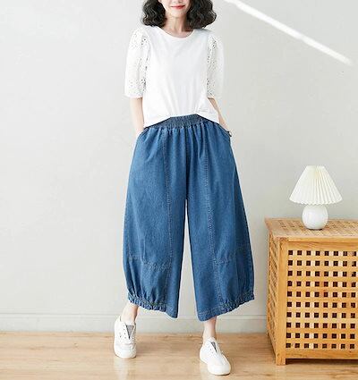 デニムパンツ ワイドパンツ レディース パンツ 春夏 デニム ワイド サーカスパンツ ロングパンツ 長ズボン ロング 9分丈 ボトムス バルーンパンツ 春 夏 きれいめ ジーンズ 大きいサイズ ズボン | koookooo