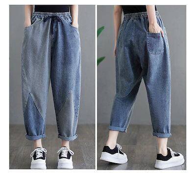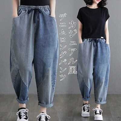 デニムパンツ レディース ロングパンツ ズボン デニム ワイドパンツ ガウチョ ハロンパンツ ロング丈 ボトムス 春 ガウチョパンツ ハイウエスト 体型カバー 着痩せ ウエストゴム 切り替え お洒落 | koookooo