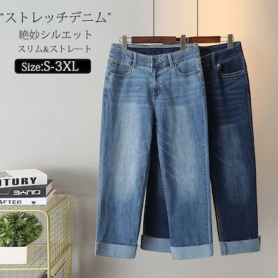デニムパンツ レディース ワイドパンツ デニム 春 夏 パンツ ストレッチ ボトムス ストレッチパンツ テーパードパンツ ジーンズ 大きいサイズ 長ズボン パンツ テーパード 着痩せ 細身 ゆるい 無 | koookooo