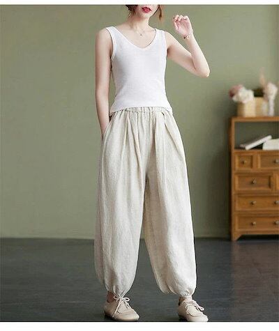 バルーンパンツ 綿麻風 ワイドパンツ レディース 夏 コクーンパンツ リネン コットン 大人カジュアル ガウチョパンツ ナチュラル 森ガール ズボン ボトムス ウエストゴム 大きいサイズ ゆったり 体 | koookooo