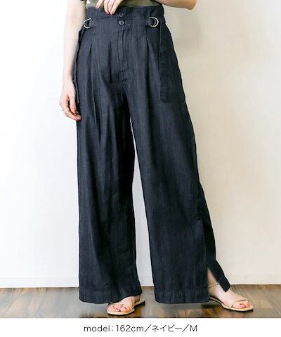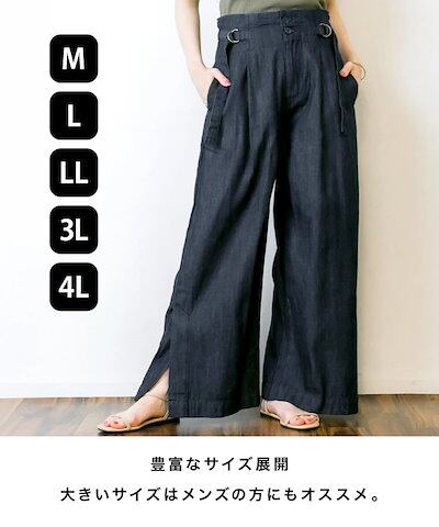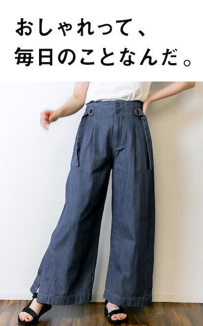 デニム レディース メンズ フレアパンツ ワイドパンツ スリット おしゃれって実は毎日のことなんだデニム裾ベンツワイドパンツ 大きいサイズ ボトムス ジーンズ タックパンツ ガウチョ ウエストゴム | koookooo